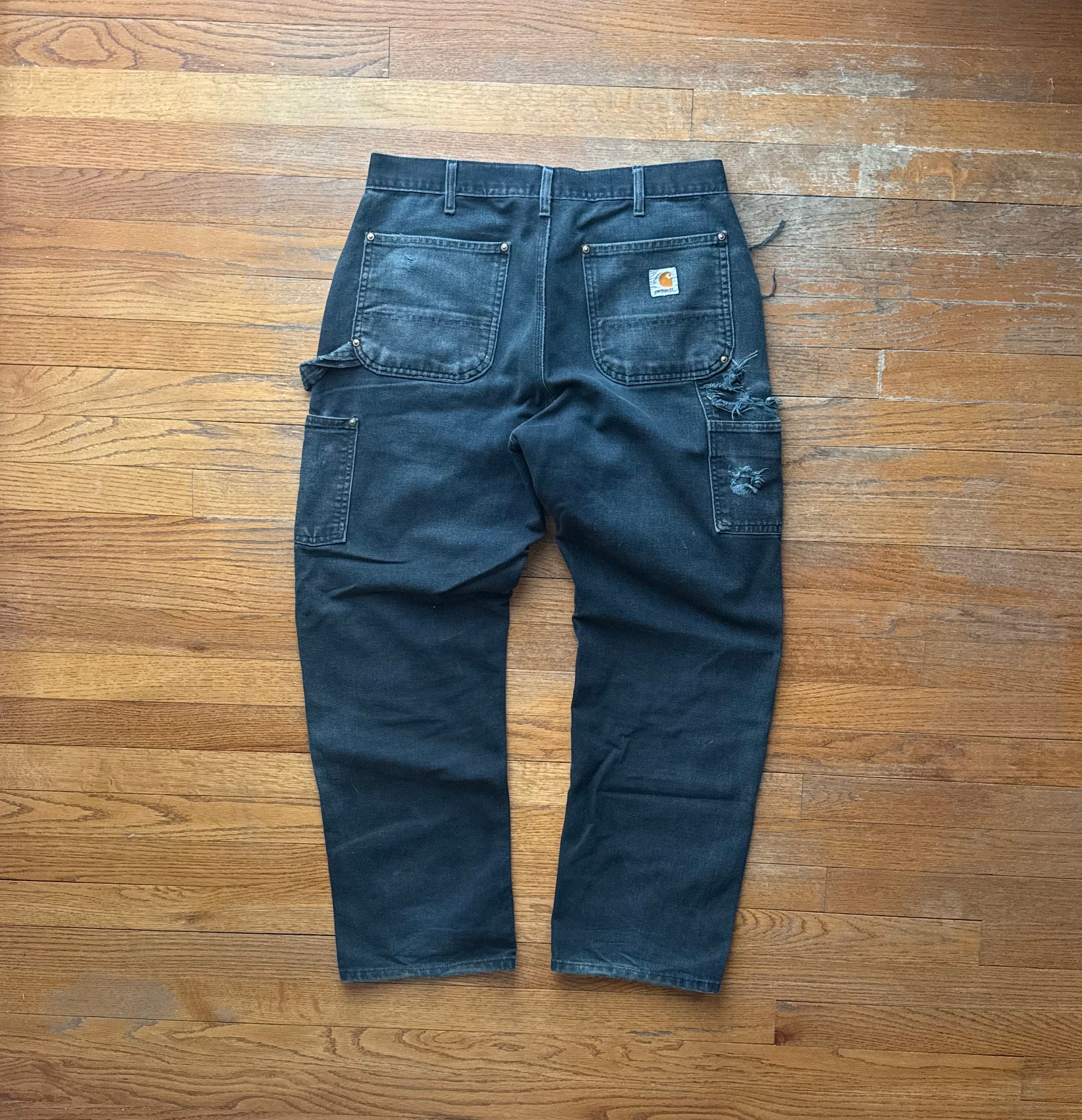 Faded Black Carhartt Double Knee Pants - 32 x 28.5