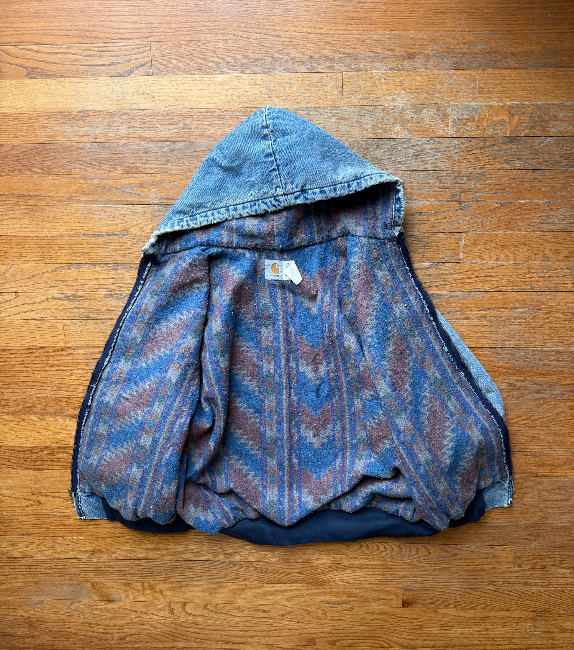 Faded n Thrashed Denim Southwest Aztec Lined Carhartt Active Jacket - XL